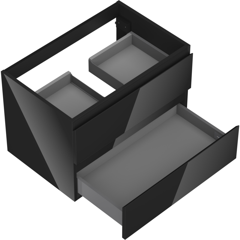 Specyfikacja produktu: Szerokość: 70 cm Wysokość: 47 cm Głębokość: 46 cm Kolor korpus: Czarny połysk Materiał korpus: Płyta lakierowana Kolor front: Czarny połysk Materiał front: Płyta MDF lakierowana Struktura frontu: Gładka Ilość szuflad: 2 Przestronna szuflada z funkcją cichego domyku Pełny wysuw ułatwiający dostęp do zawartości szuflad Powierzchnia odporna na promienie UV Do kompletowania z blatem lub umywalką Otis, Vela Produkt zmontowany