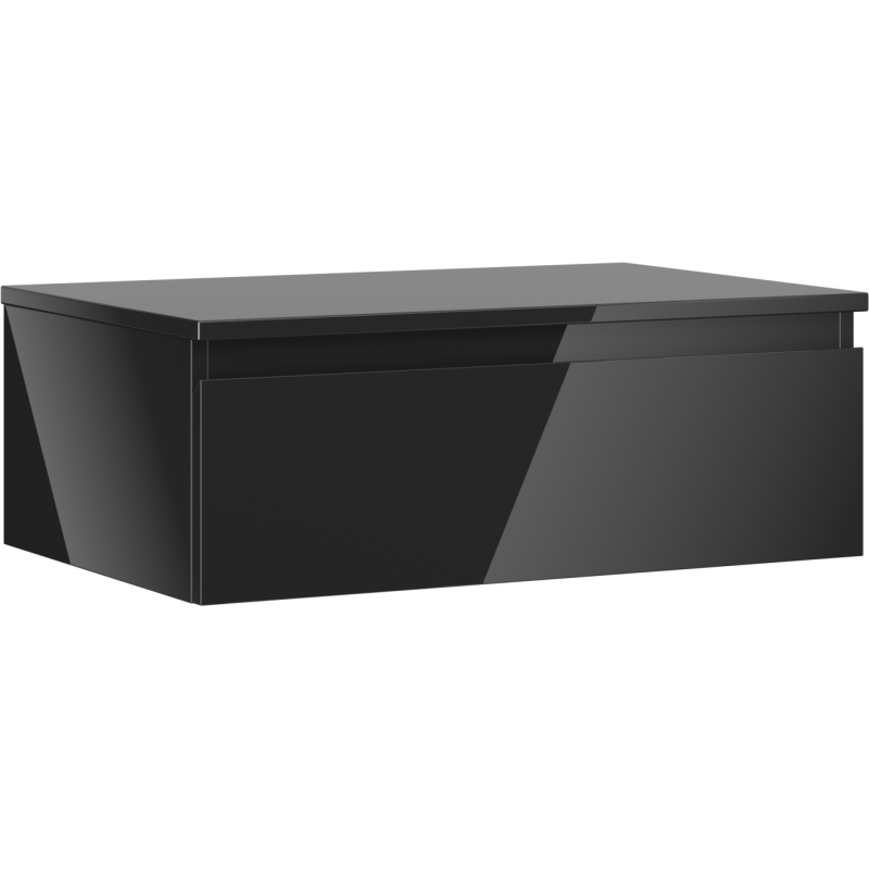 Specyfikacja produktu: Wymiary szafki: Szerokość: 70 cm Wysokość: 23,5 cm Głębokość: 46 cm Kolor korpus: Czarny połysk Materiał korpus: Płyta lakierowana Kolor front: Czarny połysk Materiał front: Płyta MDF lakierowana Struktura frontu: Gładka Ilość szuflad: 1 Przestronna szuflada z funkcją cichego domyku Pełny wysuw ułatwiający dostęp do zawartości szuflad Powierzchnia odporna na promienie UV Wymiary blatu: Szerokość: 70,6 cm Głębokość: 46,5 cm Grubość: 1,8 cm Kolor blatu: Czarny połysk Materiał blatu: Płyta MDF lakierowana Powierzchnia odporna na promienie UV Idealny jako podstawa do umywalek nablatowych Produkt zmontowany