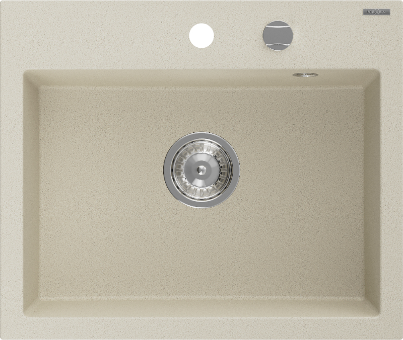 Mexen Oscar 1miskový granitový dřez 580 x 490 mm, béžový, chromový sifon - 6519581000-69