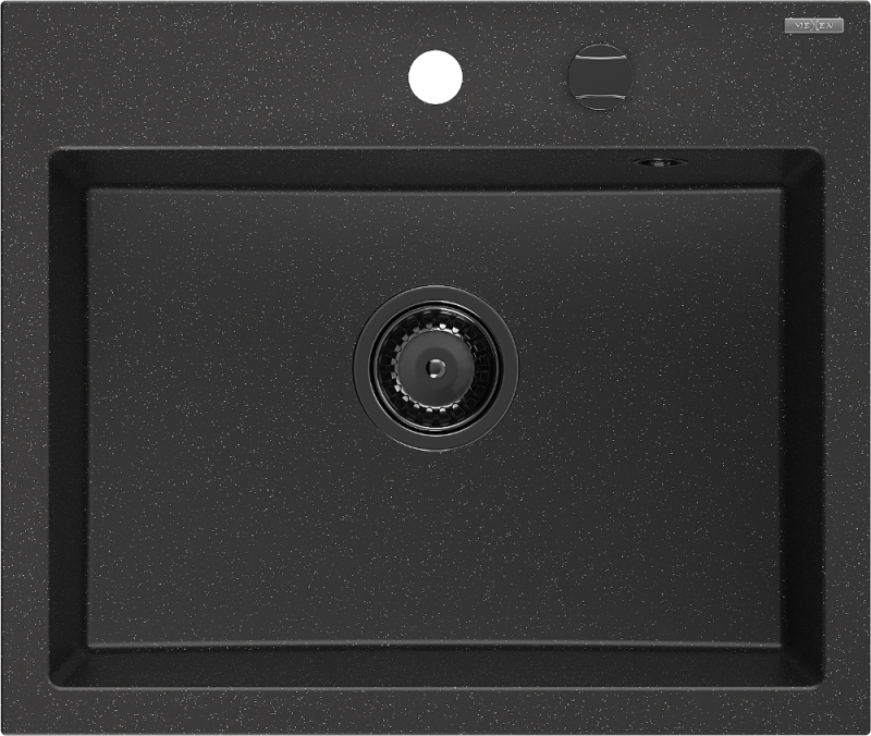 Mexen Oscar 1miskový granitový dřez 580 x 490 mm, černá/stříbrná metalíza, černý sifon - 6519581000-73-B