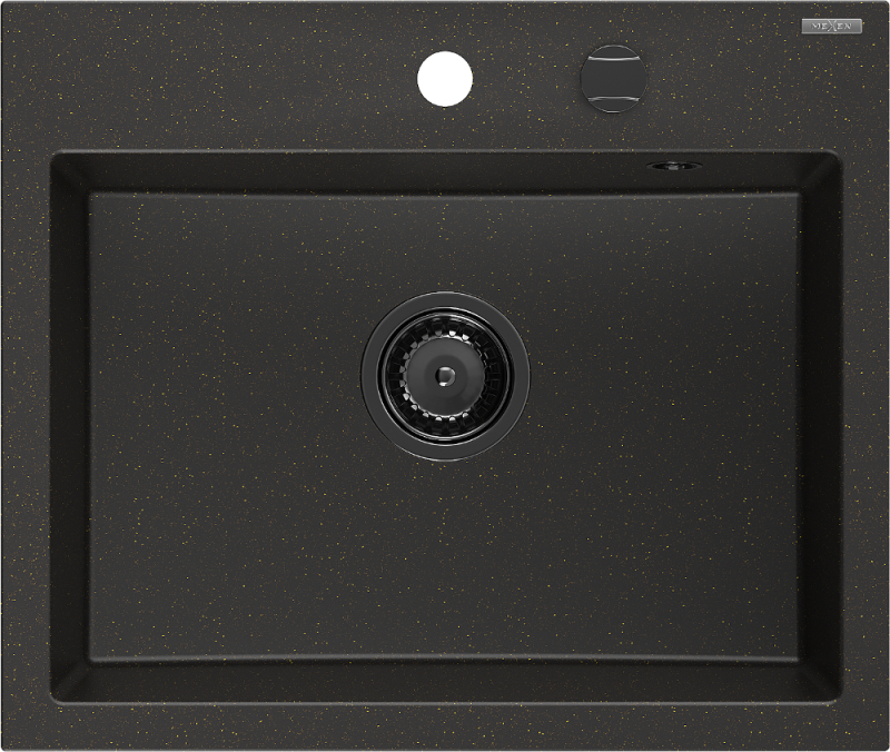 Mexen Oscar 1miskový granitový dřez 580 x 490 mm, černá/zlatá metalíza, černý sifon - 6519581000-75-B