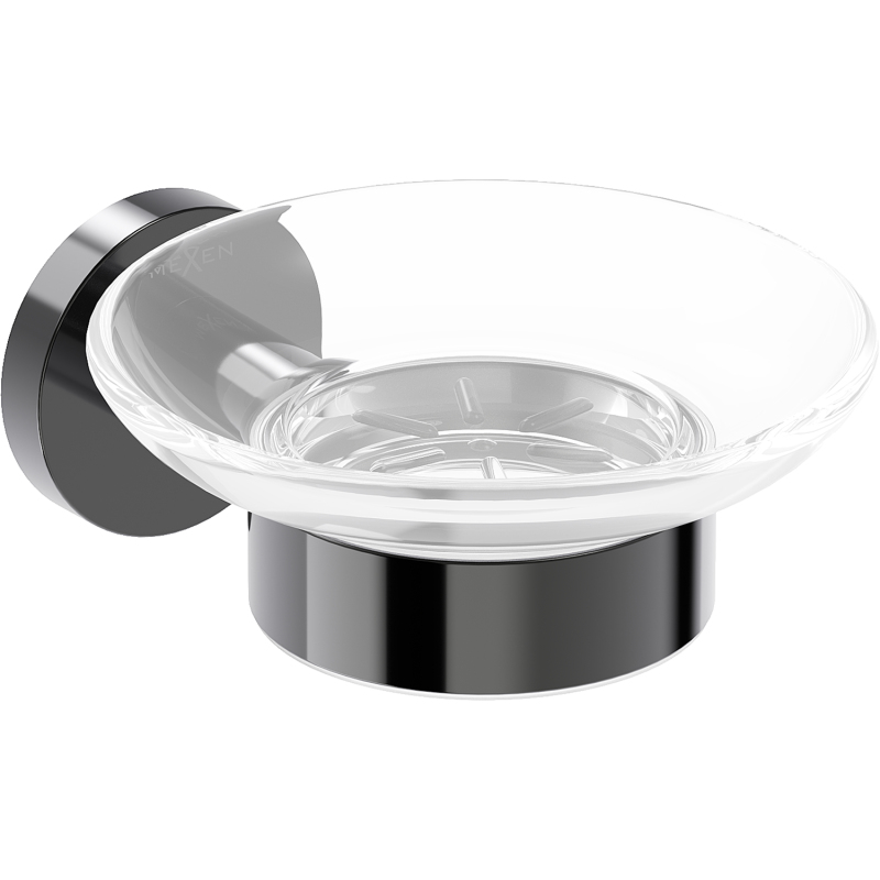 Specyfikacja produktu: Materiał: Metal + Szkło Wykończenie: Black chrome Szerokość: 11 cm Wysokość: 5,5 cm Odległość od ściany: 13,5 cm