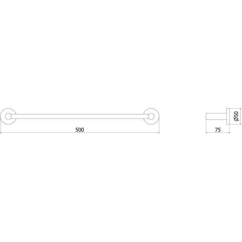 Specyfikacja produktu: Materiał: Metal Wykończenie: Złoty szczotkowany Szerokość: 50 cm Wysokość: 5 cm Odległość od ściany: 7,5 cm