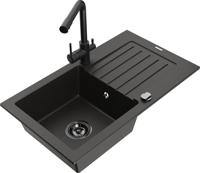 Mexen Pablo jednodřez granit s odkapem a baterií Duero, černá/zlatá 6510-75-671600-70-B