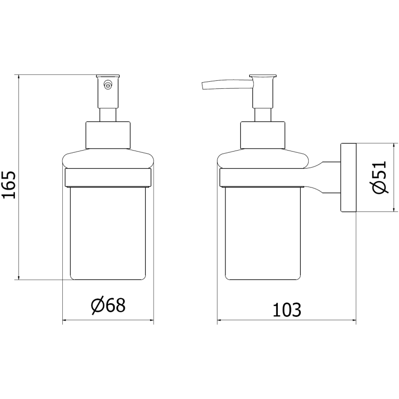 Specyfikacja produktu: Materiał: Metal + Szkło Wykończenie: Black chrome Szerokość: 6,8 cm Wysokość: 16,5 cm Odległość od ściany: 10,3 cm Pojemność: 180 ml