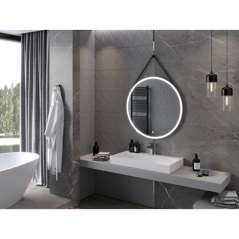 Mexen Reni osvětlené koupelnové zrcadlo, kulaté 90 cm, LED 6000K, proti zamlžování, černý rám - 9812-090-090-611-70