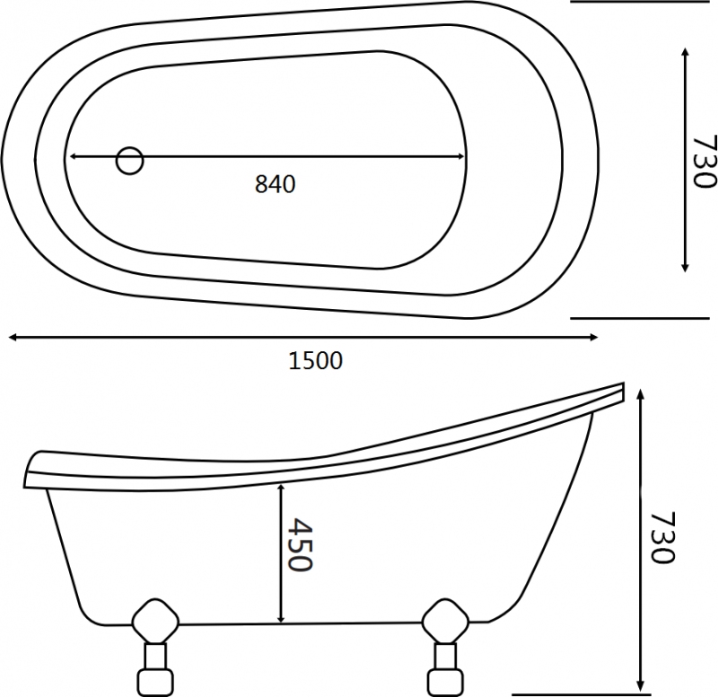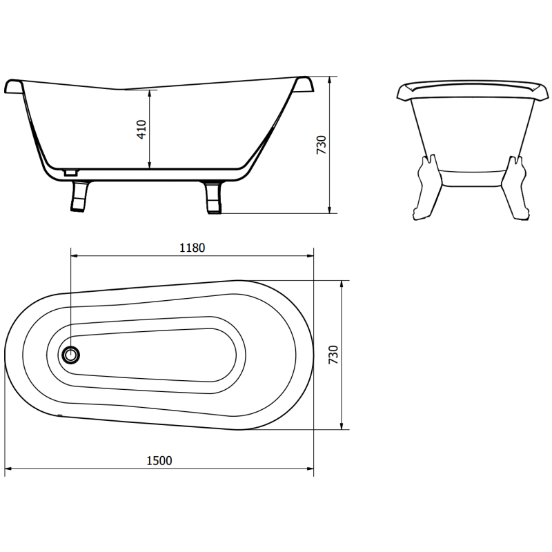 Mexen Retro volně stojící vana 150 x 73 cm bílá chromové nohy - 53251507300-00