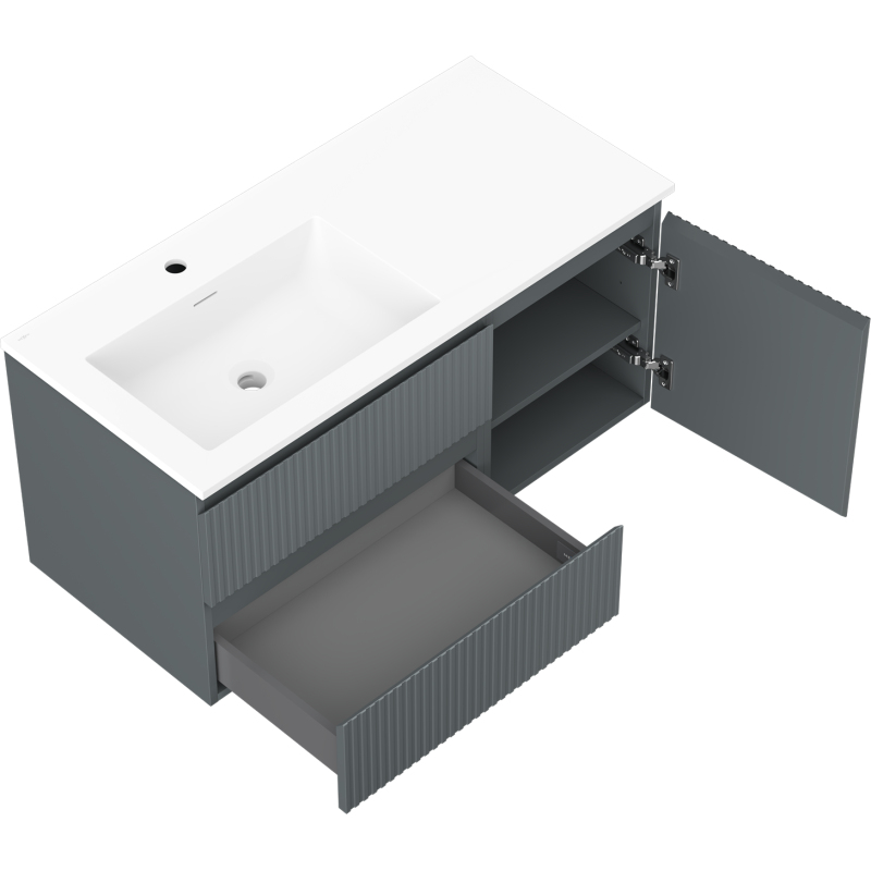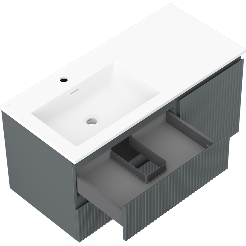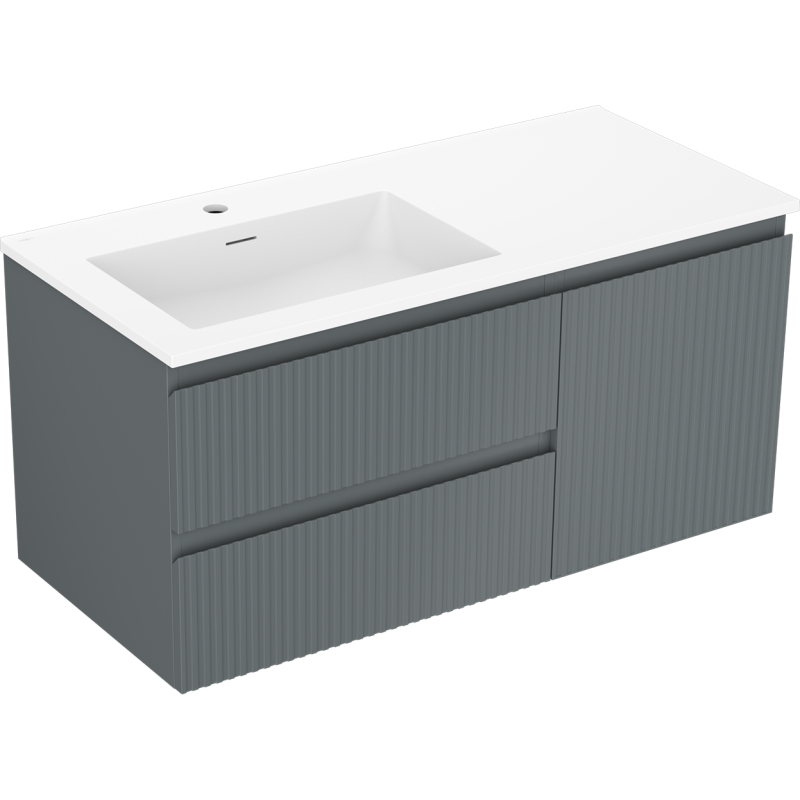 Mexen Rivel koupelnová skříňka 100 cm s umyvadlem Otis levým, 2S, 1D, drážkovaná, grafit/matná bílá - 91A23-10047-3-BBFFF66-W18L01