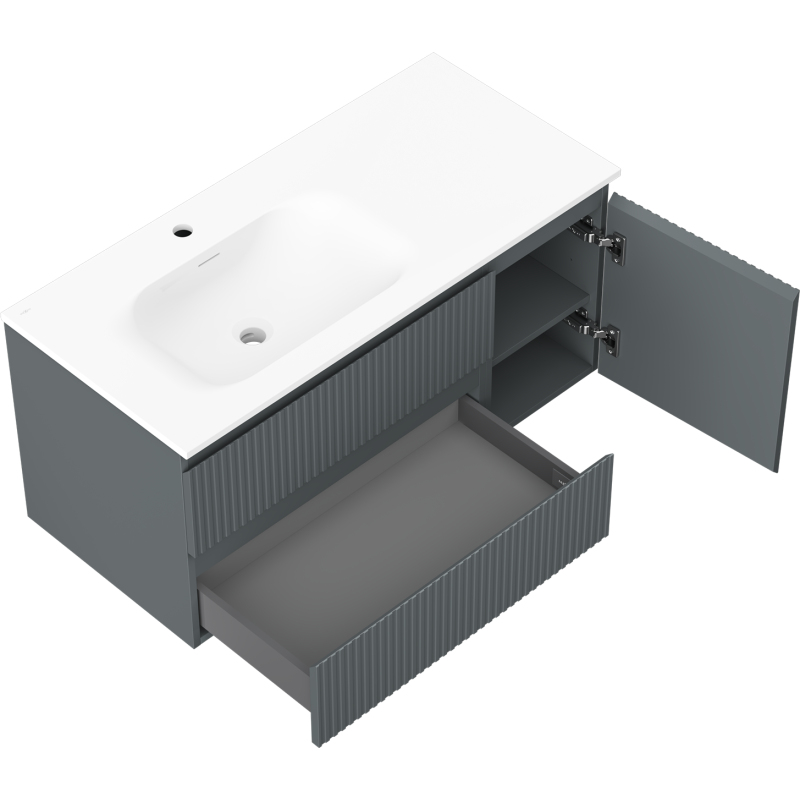 Mexen Rivel koupelnová skříňka 100 cm s umyvadlem Vela levým, 2S, 1D, drážkovaná, grafit/matná bílá - 91A23-10047-3-BBFFF66-W23L01