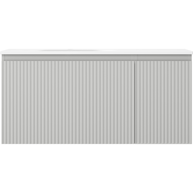 Mexen Rivel koupelnová skříňka 100 cm s umyvadlem Vela vlevo, 1S, 1D, drážkovaná, matná šedá/matná bílá - 91A23-10047-3-BBFF62-W23L01