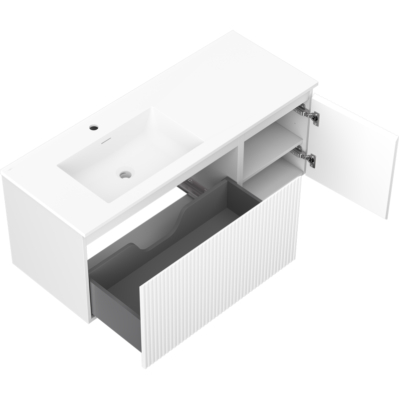 Mexen Rivel koupelnová skříňka 120 cm s umyvadlem Otis levým, 1S, 1D, drážkovaná, matná bílá - 91A23-12047-3-BBFF01-W18L01