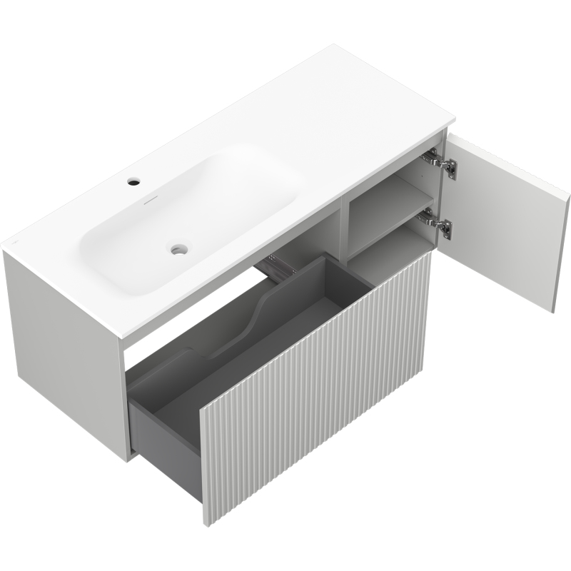 Mexen Rivel koupelnová skříňka 120 cm s umyvadlem Vela levým, 1S, 1D, drážkovaná, matná šedá/matná bílá - 91A23-12047-3-BBFF62-W23L01