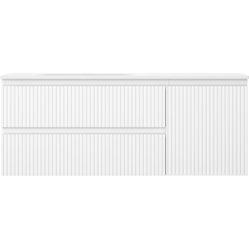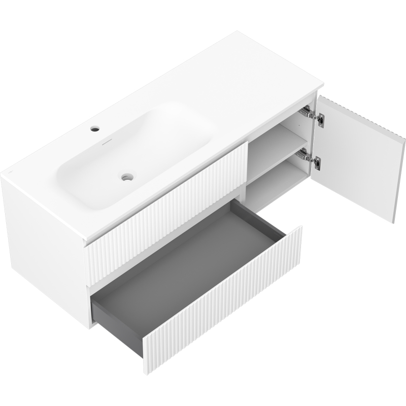 Mexen Rivel koupelnová skříňka 120 cm s umyvadlem Vela levým, 2S, 1D, drážkovaná, matná bílá - 91A23-12047-3-BBFFF01-W23L01