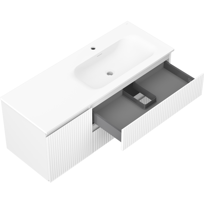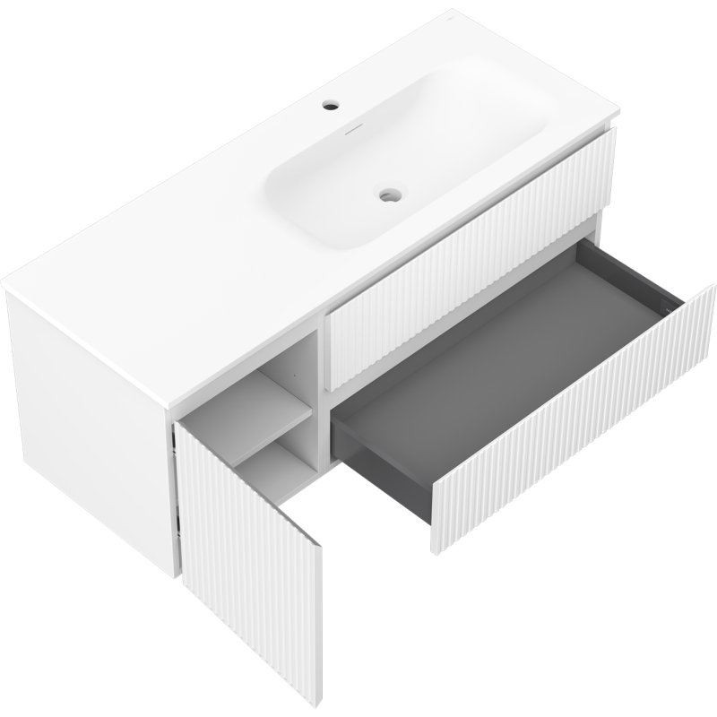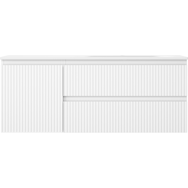 Mexen Rivel koupelnová skříňka 120 cm s umyvadlem Vela pravá, 2S, 1D, drážkovaná, matná bílá - 91A23-12047-3-BBFFF01-W23P01