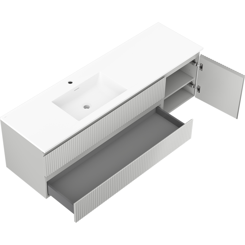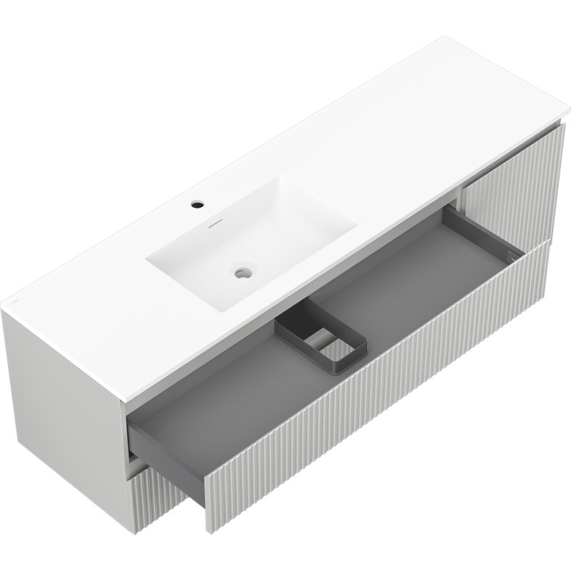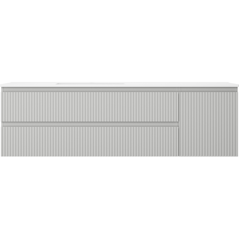 Mexen Rivel koupelnová skříňka 160 cm s umyvadlem Otis levým, 2S, 1D, drážkovaná, matná šedá/matná bílá - 91A23-16047-3-BBFFF62-W18L01