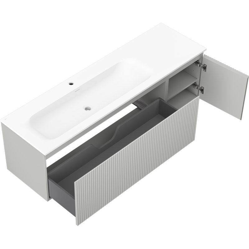 Mexen Rivel koupelnová skříňka 160 cm s umyvadlem Vela levým, 1S, 1D, drážkovaná, matná šedá/matná bílá - 91A23-16047-3-BBFF62-W23L01