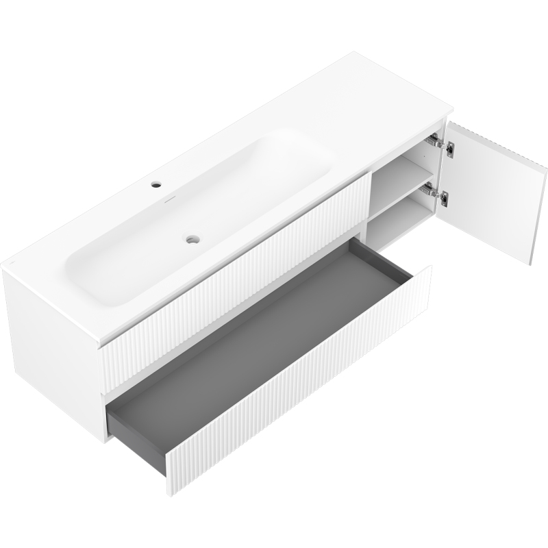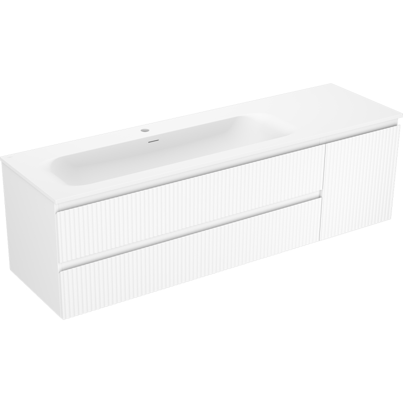 Mexen Rivel koupelnová skříňka 160 cm s umyvadlem Vela levým, 2S, 1D, drážkovaná, matná bílá - 91A23-16047-3-BBFFF01-W23L01