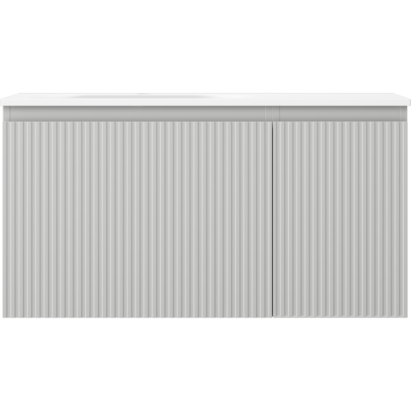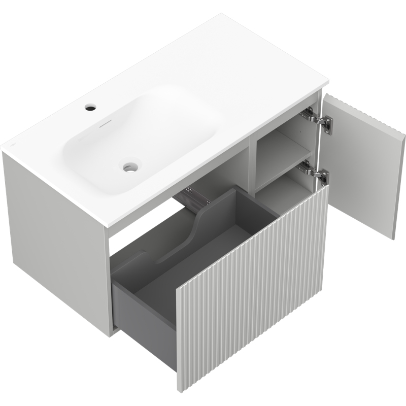 Mexen Rivel koupelnová skříňka 90 cm s umyvadlem Vela levým, 1S, 1D, drážkovaná, matná šedá/matná bílá - 91A23-09047-3-BBFF62-W23L01