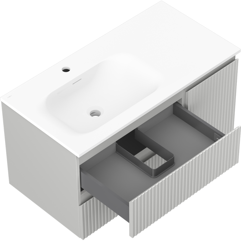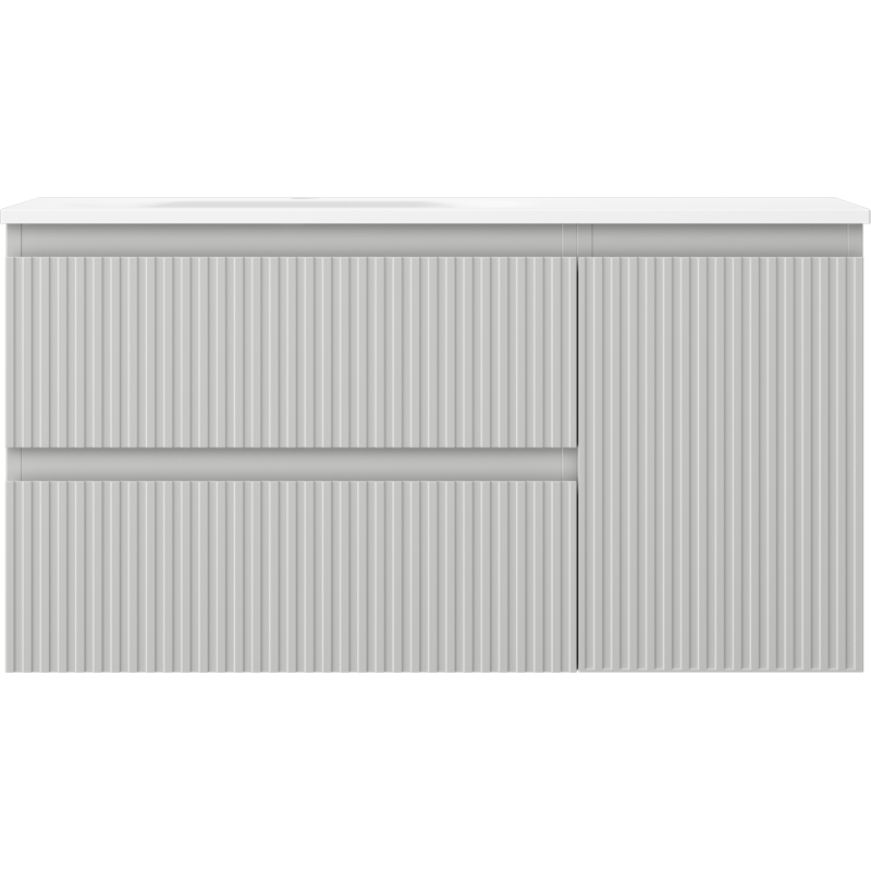 Mexen Rivel koupelnová skříňka 90 cm s umyvadlem Vela levým, 2S, 1D, drážkovaná, matná šedá/matná bílá - 91A23-09047-3-BBFFF62-W23L01