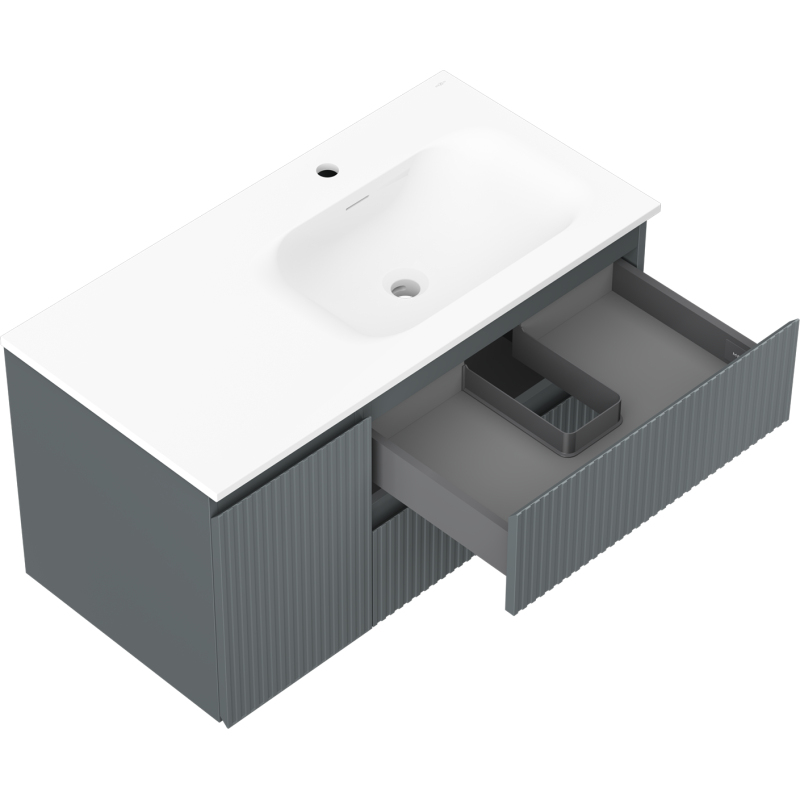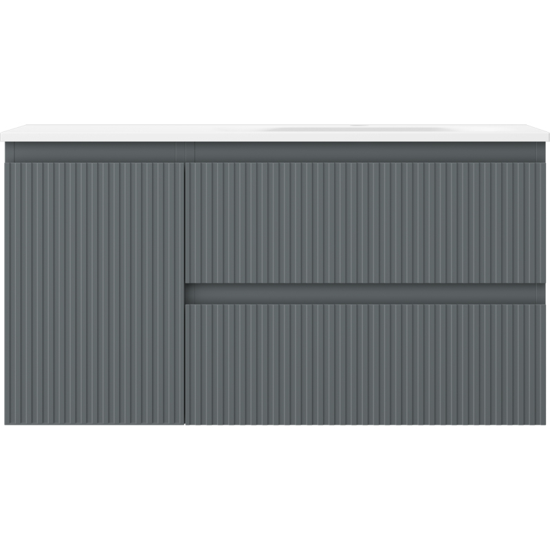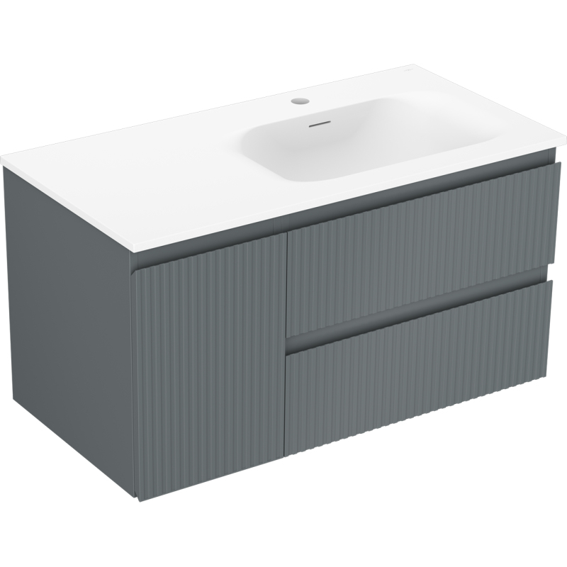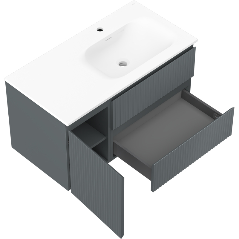 Mexen Rivel koupelnová skříňka 90 cm s umyvadlem Vela pravá, 2S, 1D, drážkovaná, grafit/matná bílá - 91A23-09047-3-BBFFF66-W23P01