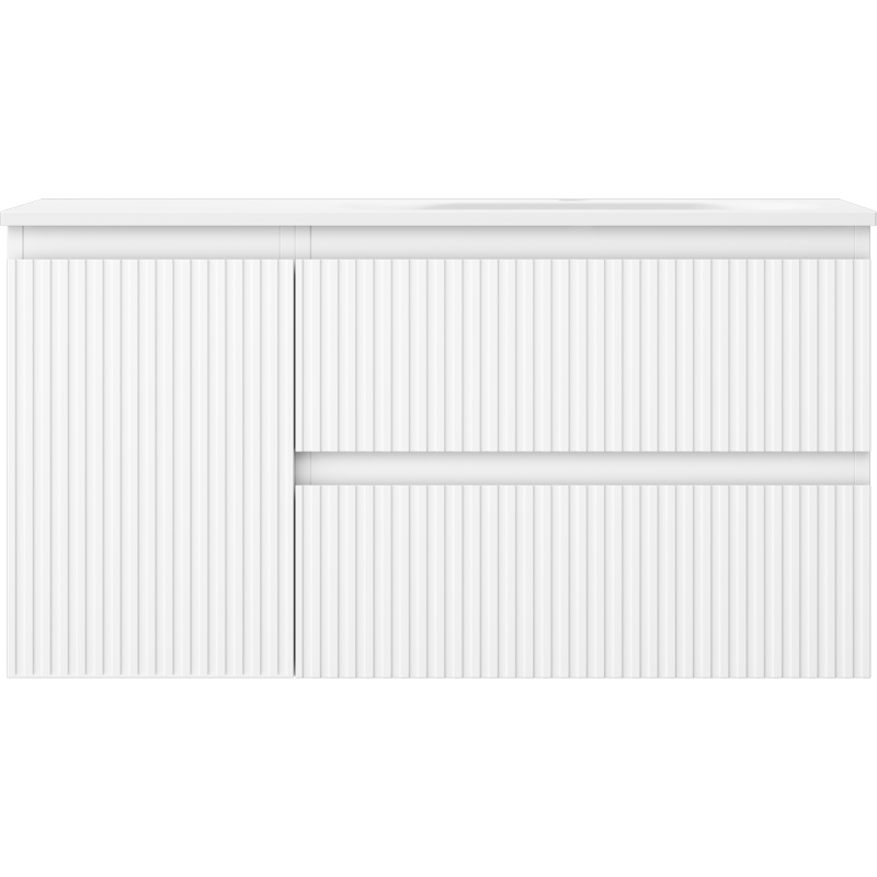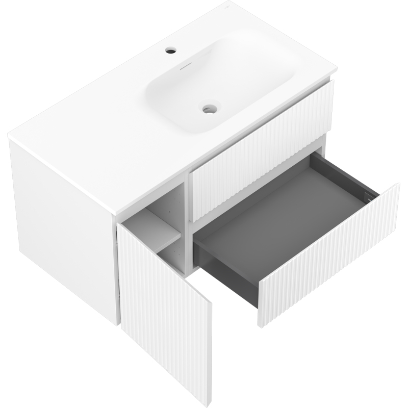 Mexen Rivel koupelnová skříňka 90 cm s umyvadlem Vela pravá, 2S, 1D, drážkovaná, matná bílá - 91A23-09047-3-BBFFF01-W23P01
