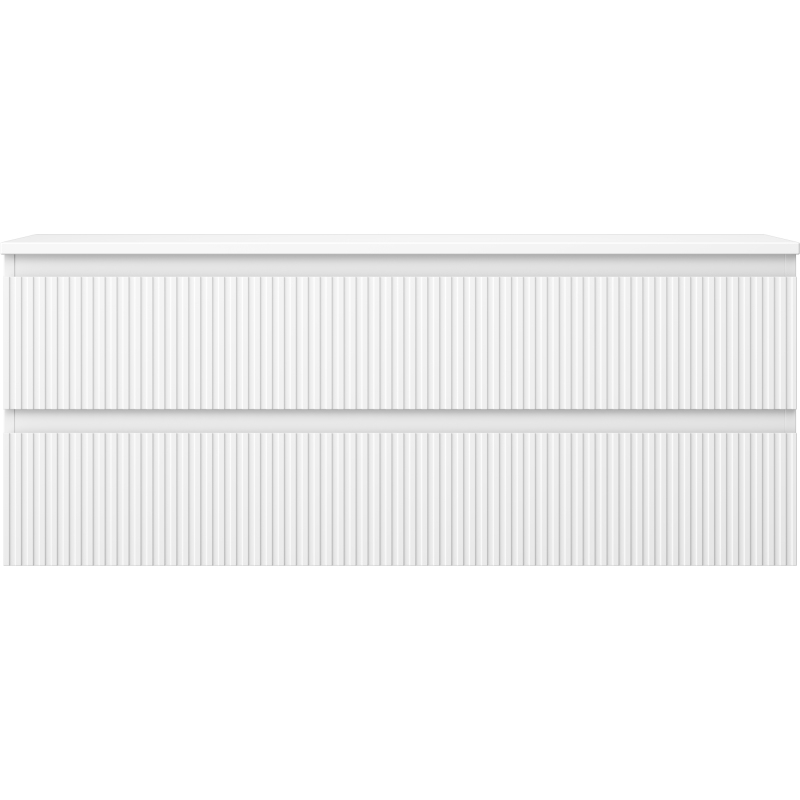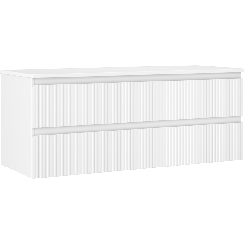 Mexen Rivel koupelnová skříňka pod umyvadlo 120 cm s deskou, 2 zásuvky, drážkovaná, matná bílá - 91A20-12047-2-BFFC01