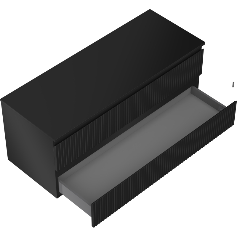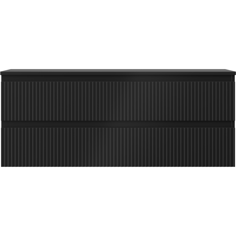 Mexen Rivel koupelnová skříňka pod umyvadlo 120 cm s pracovní deskou, 2 zásuvky, drážkovaná, matně černá - 91A20-12047-2-BFFC71