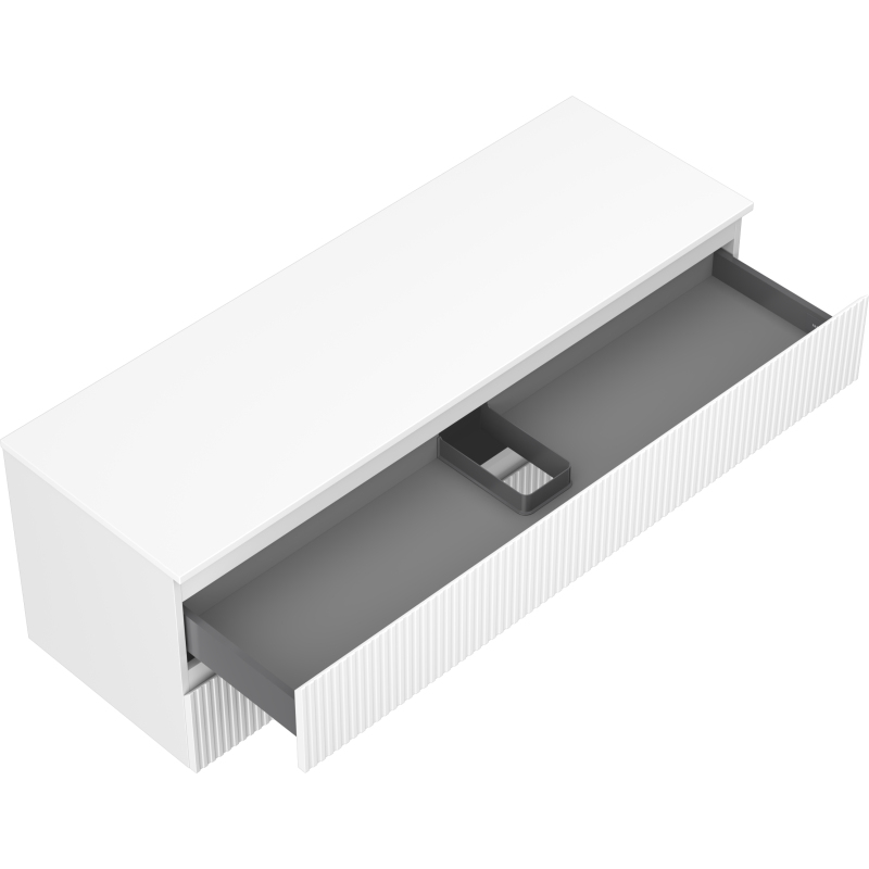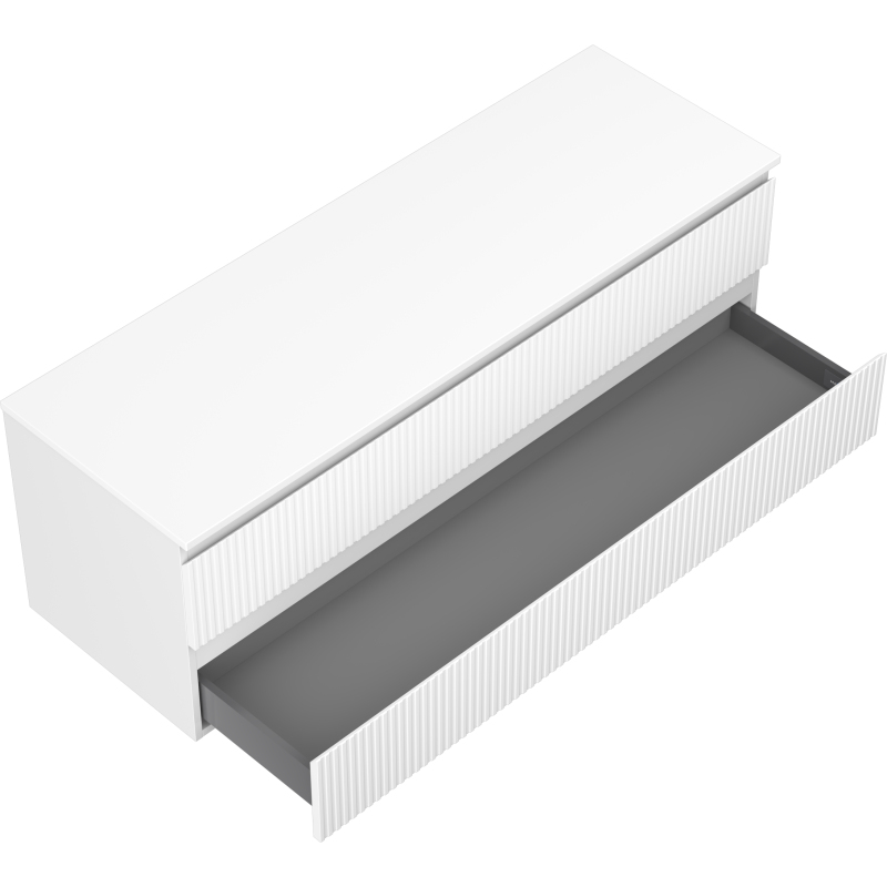 Mexen Rivel koupelnová skříňka pod umyvadlo 140 cm s pracovní deskou, 2 zásuvky, drážkovaná, matně bílá - 91A20-14047-2-BFFC01
