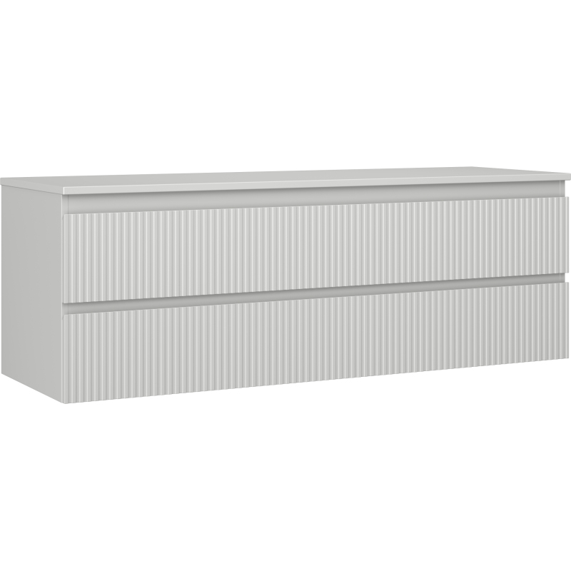 Mexen Rivel koupelnová skříňka pod umyvadlo 140 cm s pracovní deskou, 2 zásuvky, drážkovaná, matně šedá - 91A20-14047-2-BFFC62