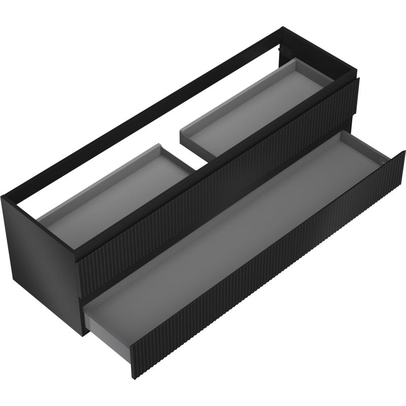 Mexen Rivel koupelnová skříňka pod umyvadlo 160 cm, 2 zásuvky, drážkovaná, matná černá - 91A20-16047-2-BFF71