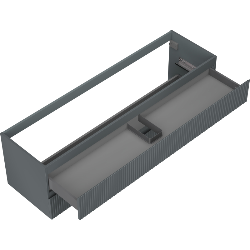Specifikace produktu: Šířka: 160 cm Výška: 47 cm Hloubka: 46 cm Barva korpusu: Matný grafit Materiál korpusu: Lakovaná deska Barva čela: Matný grafit Materiál čela: Lakovaná MDF deska Struktura čela: Drážkovaná Počet zásuvek: 2 Prostorná zásuvka s funkcí tlumeného dovírání Plný výsuv pro snadný přístup k obsahu zásuvky Povrch odolný vůči UV záření Kombinovatelný s pracovní deskou nebo umyvadlem Otis, Vela Smontovaný produkt