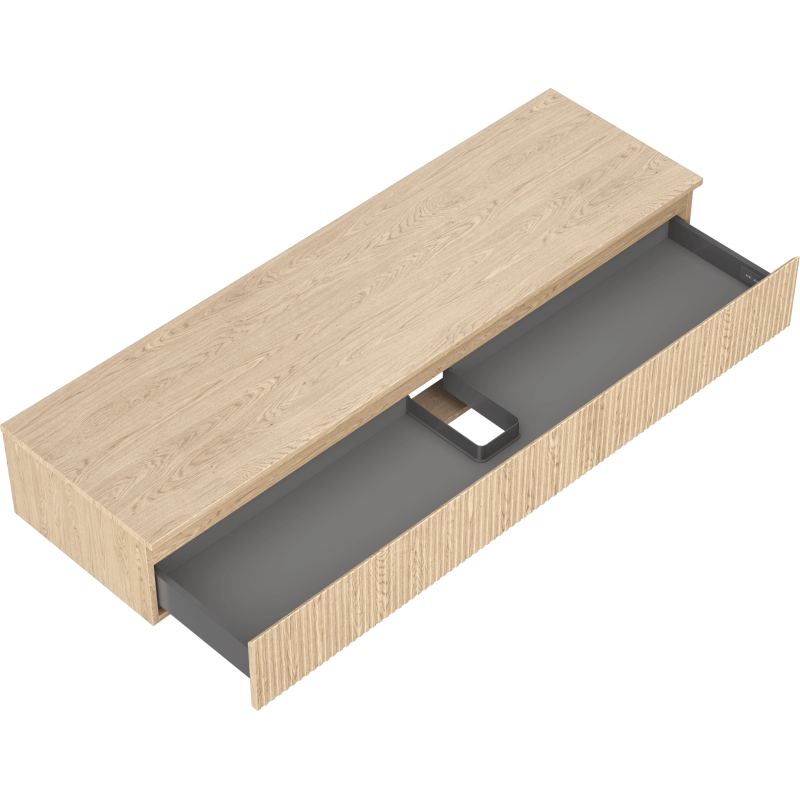 Mexen Rivel koupelnová skříňka pod umyvadlo 160 cm s pracovní deskou, 1 zásuvka, drážkovaná, dub - 91A20-16023-1-BFC81