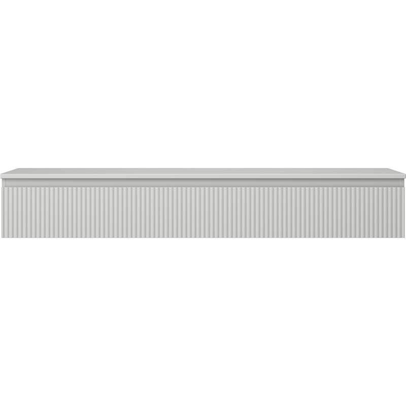 Koupelnová skříňka s pracovní deskou v matně šedém provedení s drážkovaným čelem nabízí moderní design a praktický úložný prostor, ideální jako podstavec pro umyvadla na desku.