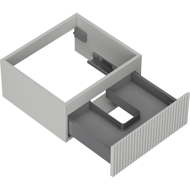 Specifikace produktu: Šířka: 50 cm Výška: 23,5 cm Hloubka: 46 cm Barva korpusu: Matně šedá Materiál korpusu: Lakovaná deska Barva čela: Matně šedá Materiál čela: Lakovaná MDF deska Struktura čela: Drážkovaná Počet zásuvek: 1 Prostorná zásuvka s funkcí tlumeného dovírání Plný výsuv pro snadný přístup k obsahu zásuvky Povrch odolný vůči UV záření Kombinovatelný s pracovní deskou nebo umyvadlem Otis, Vela Smontovaný produkt