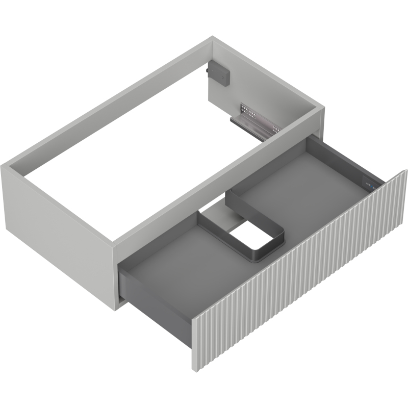 Specifikace produktu: Šířka: 80 cm Výška: 23,5 cm Hloubka: 46 cm Barva korpusu: Matně šedá Materiál korpusu: Lakovaná deska Barva čela: Matně šedá Materiál čela: Lakovaná MDF deska Struktura čela: Drážkovaná Počet zásuvek: 1 Prostorná zásuvka s funkcí tlumeného dovírání Plný výsuv pro snadný přístup k obsahu zásuvky Povrch odolný vůči UV záření Kombinovatelný s pracovní deskou nebo umyvadlem Otis, Vela Smontovaný produkt