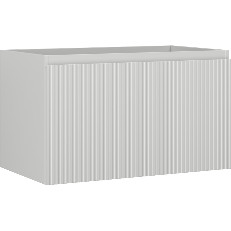 Specifikace produktu: Šířka: 80 cm Výška: 47 cm Hloubka: 46 cm Barva korpusu: Matně šedá Materiál korpusu: Lakovaná deska Barva čela: Matně šedá Materiál čela: Lakovaná MDF deska Struktura čela: Drážkovaná Počet zásuvek: 1 Prostorná zásuvka s funkcí tlumeného dovírání Plný výsuv pro snadný přístup k obsahu zásuvek Povrch odolný vůči UV záření Kombinovatelný s pracovní deskou nebo umyvadlem Otis, Vela Smontovaný produkt