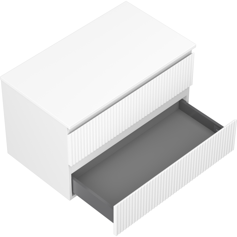Mexen Rivel koupelnová skříňka pod umyvadlo 80 cm s deskou, 2 zásuvky, drážkovaná, matná bílá - 91A20-08047-2-BFFC01