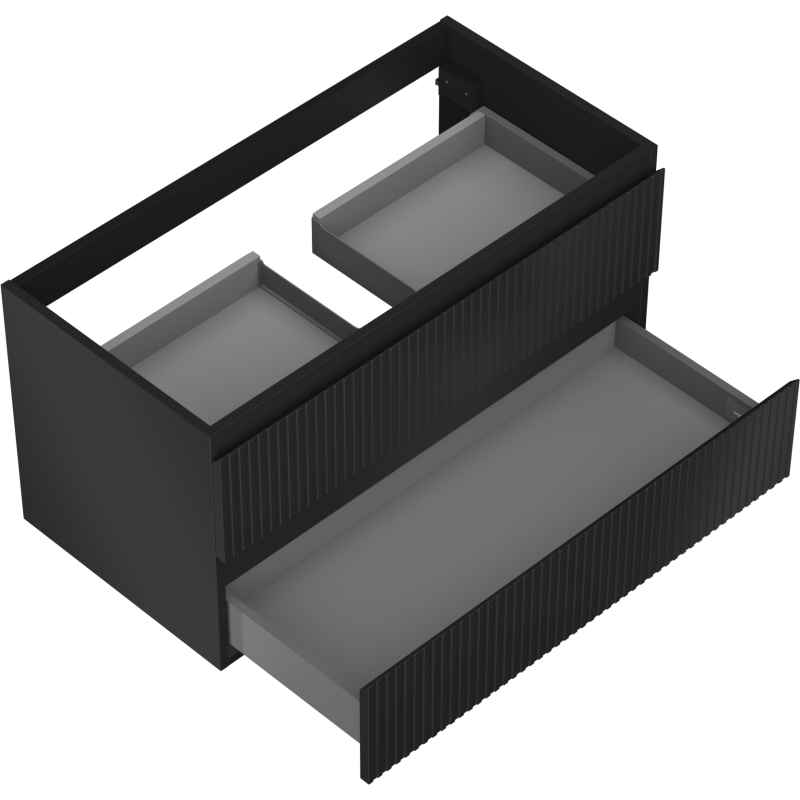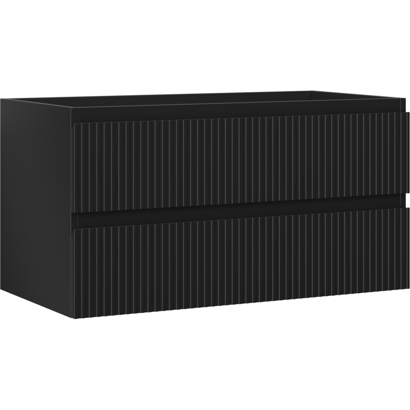 Mexen Rivel koupelnová skříňka pod umyvadlo 90 cm, 2 zásuvky, drážkovaná, matná černá - 91A20-09047-2-BFF71