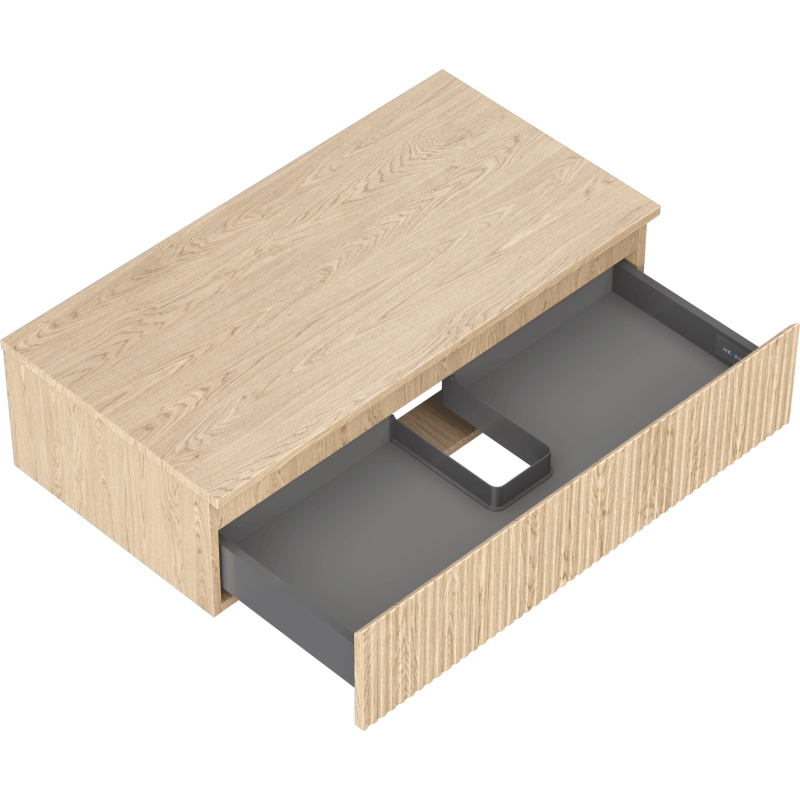 Mexen Rivel koupelnová skříňka pod umyvadlo 90 cm s pracovní deskou, 1 zásuvka, drážkovaná, dub - 91A20-09023-1-BFC81