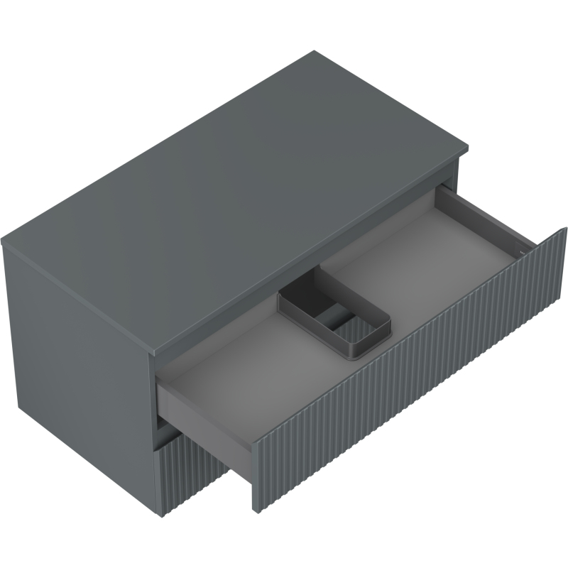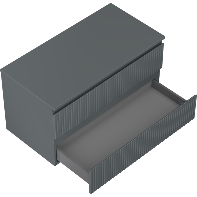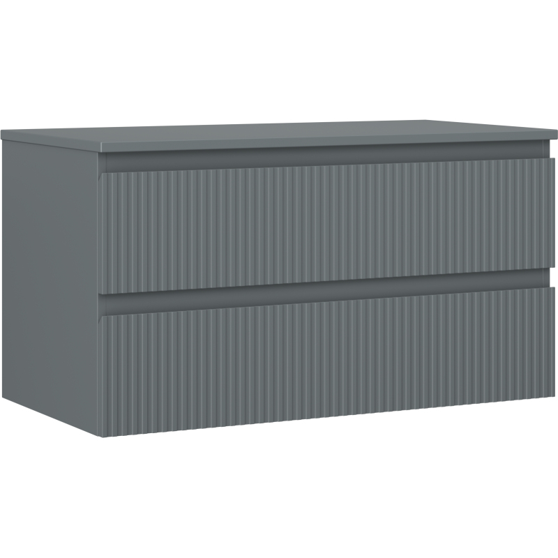 Mexen Rivel koupelnová skříňka pod umyvadlo 90 cm s pracovní deskou, 2 zásuvky, drážkovaná, matný grafit - 91A20-09047-2-BFFC66