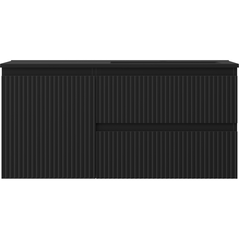 Mexen Rivel szafka łazienkowa 100 cm z umywalką Otis prawą, 2S, 1D, ryflowana, czarna mat - 91A23-10047-3-BBFFF71-W18P71