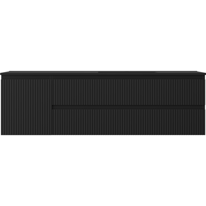 Mexen Rivel szafka łazienkowa 160 cm z umywalką Otis prawą, 2S, 1D, ryflowana, czarna mat - 91A23-16047-3-BBFFF71-W18P71