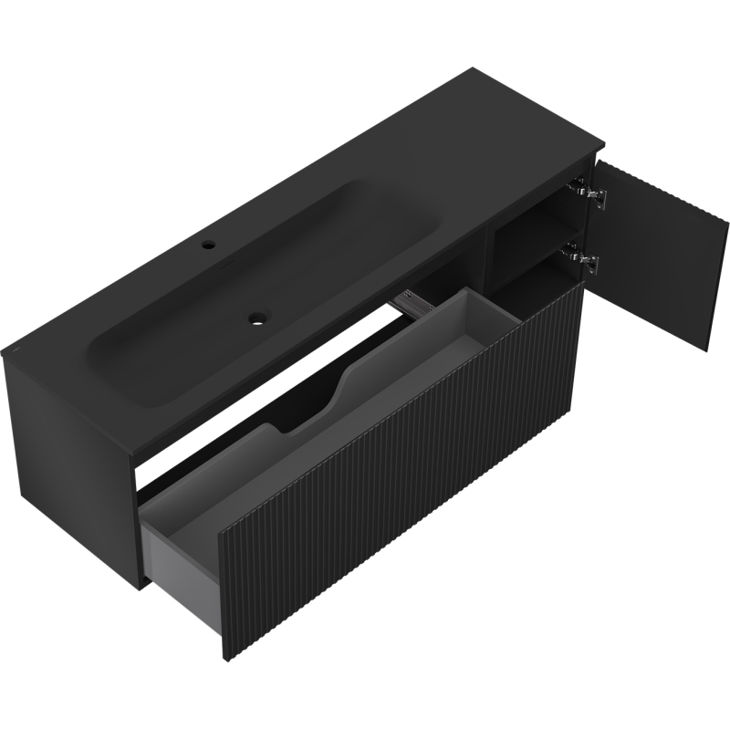 Mexen Rivel szafka łazienkowa 160 cm z umywalką Vela lewą, 1S, 1D, ryflowana, czarna mat - 91A23-16047-3-BBFF71-W23L71
