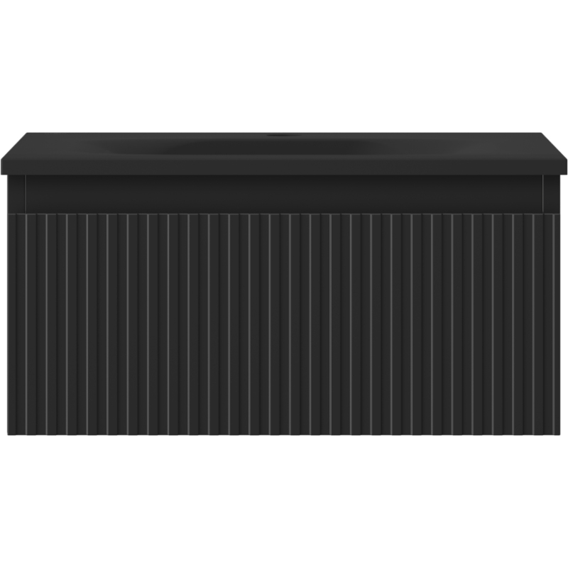 Mexen Rivel szafka łazienkowa 50 cm z umywalką Vela, 1 szuflada, ryflowana , czarna mat - 91A20-05023-1-BF71-W23M71