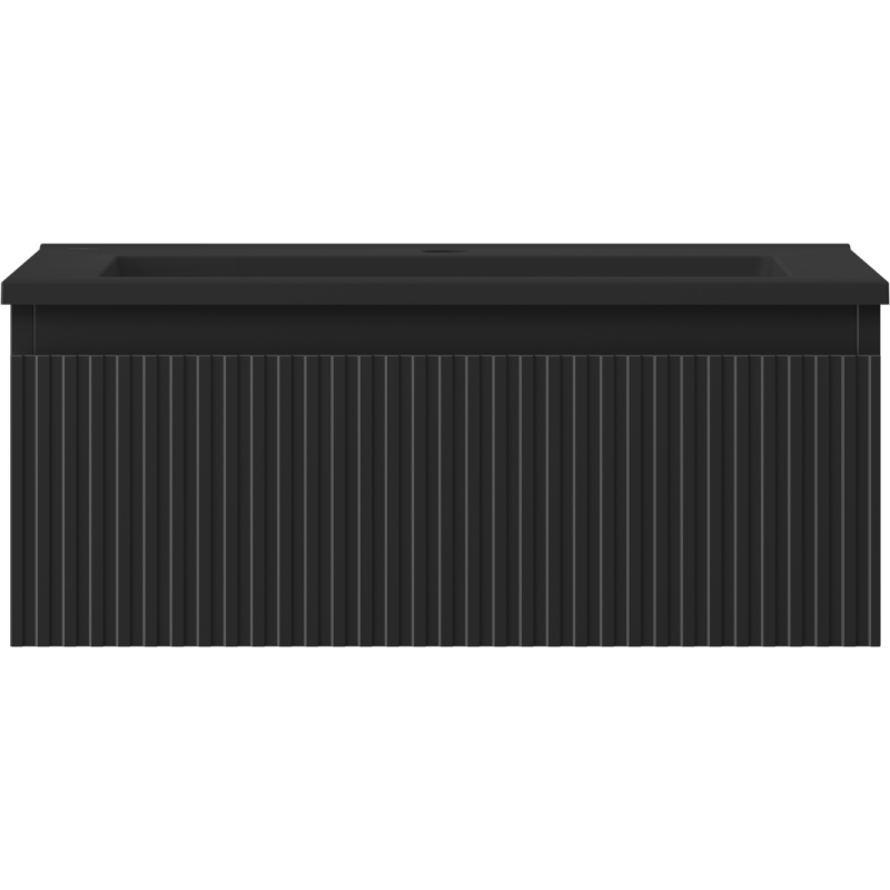 Mexen Rivel szafka łazienkowa 60 cm z umywalką Otis, 1 szuflada, ryflowana , czarna mat - 91A20-06023-1-BF71-W18M71