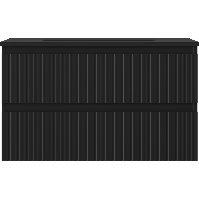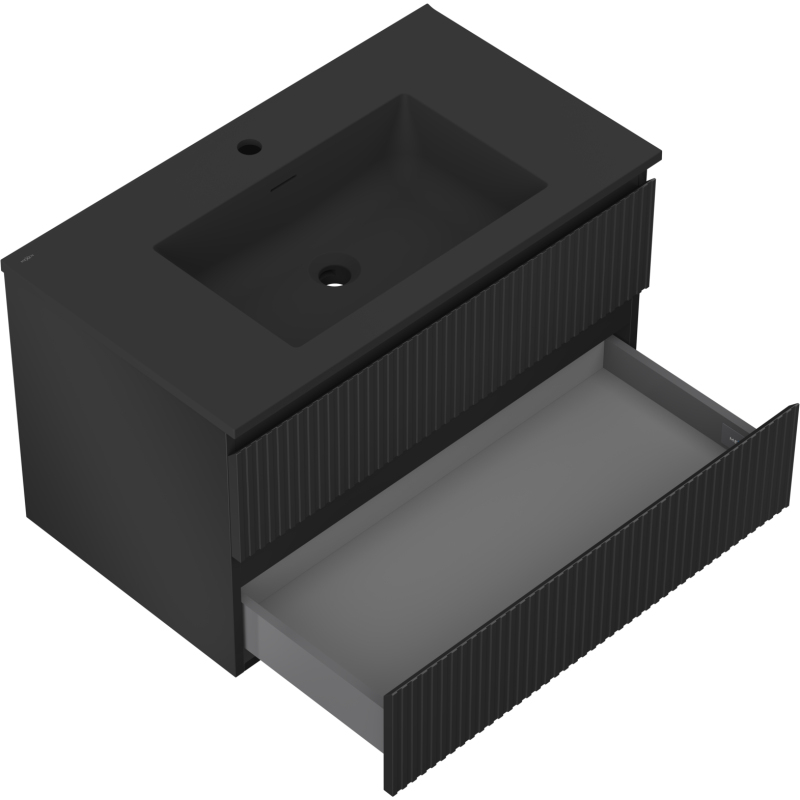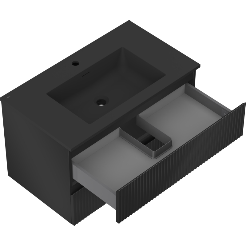 Mexen Rivel szafka łazienkowa 80 cm z umywalką Otis, 2 szuflady, ryflowana , czarna mat - 91A20-08047-2-BFF71-W18M71
