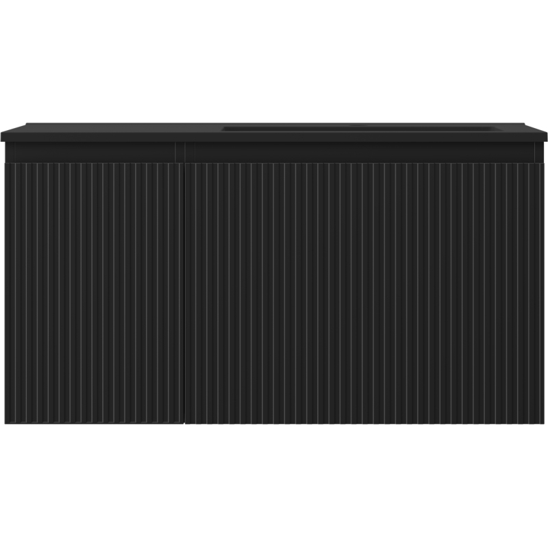 Mexen Rivel szafka łazienkowa 90 cm z umywalką Otis prawą, 1S, 1D, ryflowana, czarna mat - 91A23-09047-3-BBFF71-W18P71