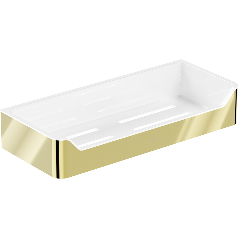 Specyfikacja produktu: Materiał: Stal nierdzewna AISI 304 + Tworzywo sztuczne Wykończenie: Złoty Szerokość: 30,5 cm Wysokość: 5,5 cm Odległość od ściany: 13 cm Półka posiada otwory, które zapewniają szybkie odprowadzanie wody Odporność na matowienie i korozję