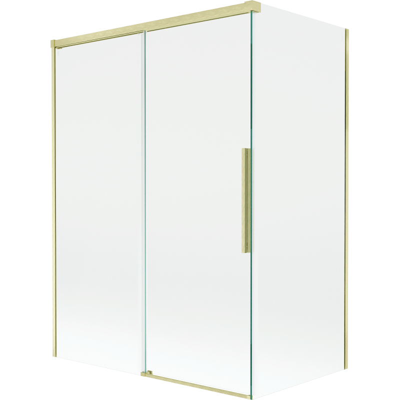 Technické údaje: Šířka: 120 cm Boční stěna: 70 cm Výška: 150 cm Typ: 2křídlé + boční stěna Montáž: Univerzální Typ: Posuvné/Posuvné Typ skla: Tvrzené Barva skla: Průhledná Tloušťka skla: 8 mm Povrchová úprava: Kartáčované zlato Profil: Hliník Povlak pro snadné čištění Možnost nastavení šířky Neviditelný mechanismus posuvu a nastavení dveří Vodítka s funkcí tlumeného zavírání Možnost sklopení dveří pro čištění síta Elastomerová těsnění pro odvod vody