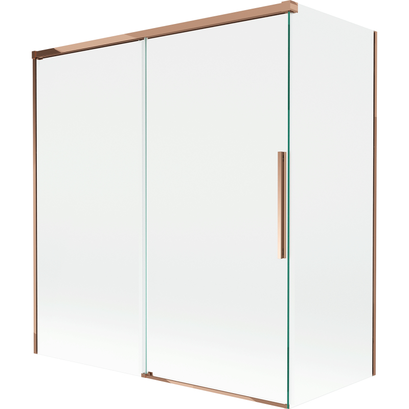 Technické údaje: Šířka: 150 cm Boční stěna: 70 cm Výška: 150 cm Typ: 2-křídlé + boční stěna Montáž: Univerzální Typ: Posuvné/Posuvné Typ skla: Tvrzené Barva skla: Průhledná Tloušťka skla: 8 mm Povrchová úprava: Růžové zlato Profil: Hliník Povlak pro snadné čištění Možnost nastavení šířky Neviditelný mechanismus posuvu a nastavení dveří Vodítka s funkcí tlumení Možnost sklopení dveří pro čištění síta Elastomerová těsnění pro odvod vody